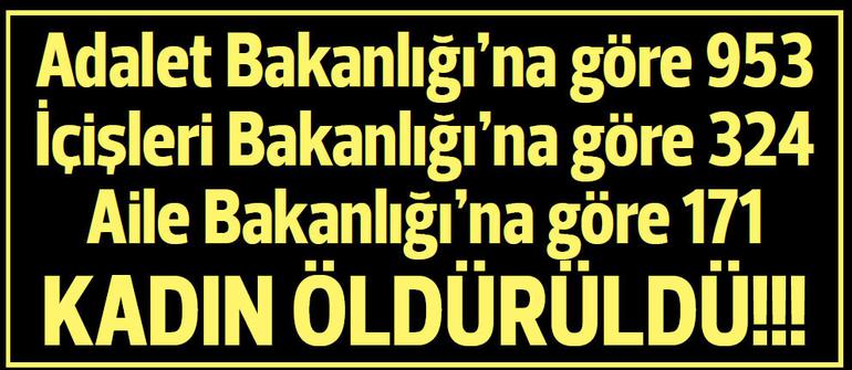 Örneğin Adalet Bakanlığı’na göre 2009’un ilk yedi ayında 953 kadın öldürülmüş. İçişleri Bakanlığı’na göre ise 324 kadın öldürülmüş. Dönemin Aile ve Sosyal Politikalar Bakanı Fatma Şahin’in İçişleri Bakanlığı’na referansla açıkladığı verilere göre ise, bu sayı 171.