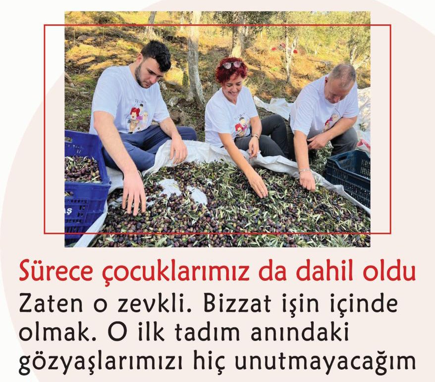 -Tabii tabii. Zaten o zevkli. Bizzat işin içinde olmak. Zeytinlerimizin hasadını yaptıktan sonra fabrikaya gittik, zeytinlerimizi ellerimizle ayıkladık. Çıkacak olan ilk damla zeytinyağını, hep birlikte heyecanla bekledik. O ilk tadım anındaki gözyaşlarımızı hiç unutmayacağım.