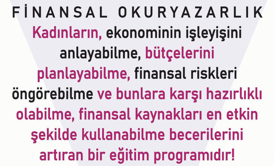 -Kadınların, ekonominin işleyişini anlayabilme, hayatlarını, özellikle de bütçelerini planlayabilme, finansal riskleri öngörebilme ve bunlara karşı hazırlıklı olabilme, finansal kaynakları en etkin şekilde kullanabilme bilgi ve becerilerini artıran bir eğitim programı. Bu eğitim, dar gelirliler ve hem aile hem de toplum içindeki rolleri nedeniyle özellikle kadınlar açısından artık temel bir ihtiyaç. Ayrıca önemli bir güçlendirme potansiyeli taşıyor. Yemek, barınma, sağlık, eğitim ve emeklilik gibi temel ihtiyaçlar için finansal planlama yeteneği, hem kadınlar hem de aileleri için daha güvenli bir sosyo-ekonomik çevre yaratmalarına olanak sağlıyor.